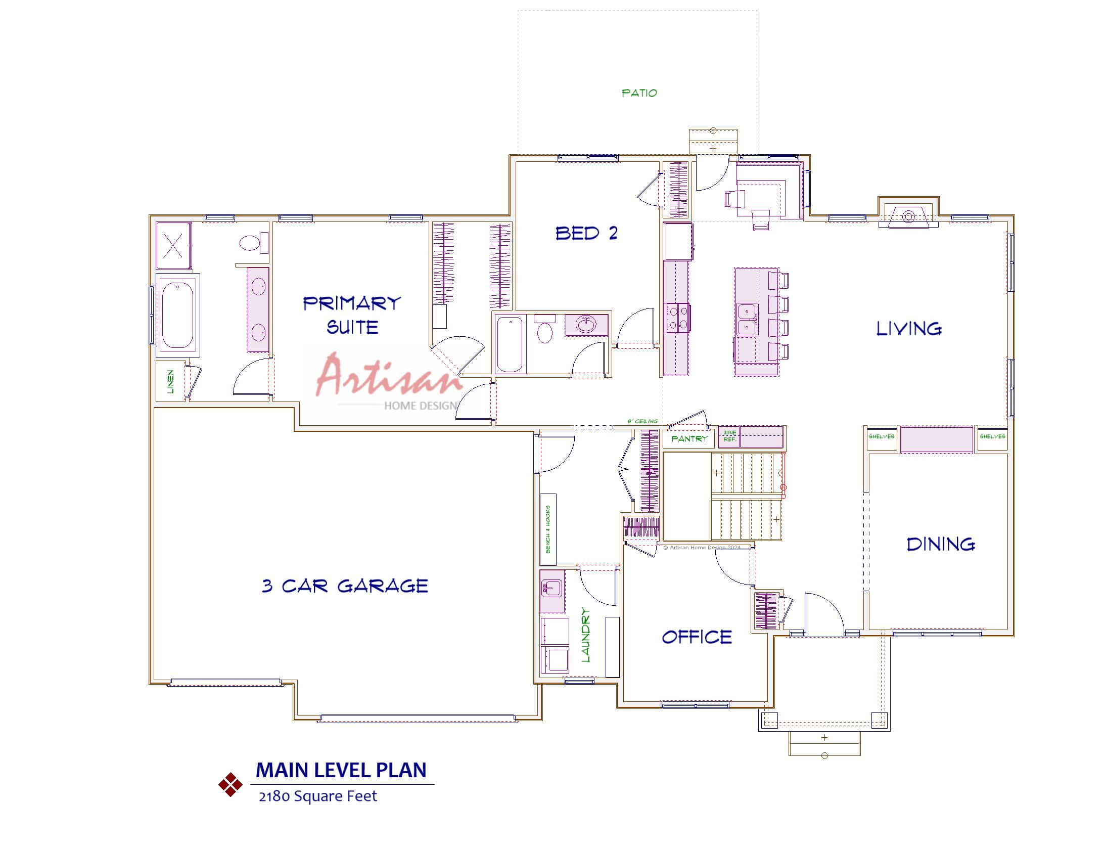 - Open main level plan with dining & breakfast areas, plus office & 9' ceilings